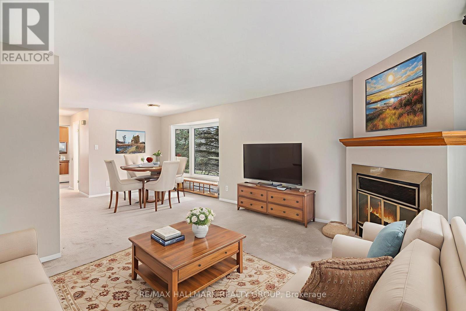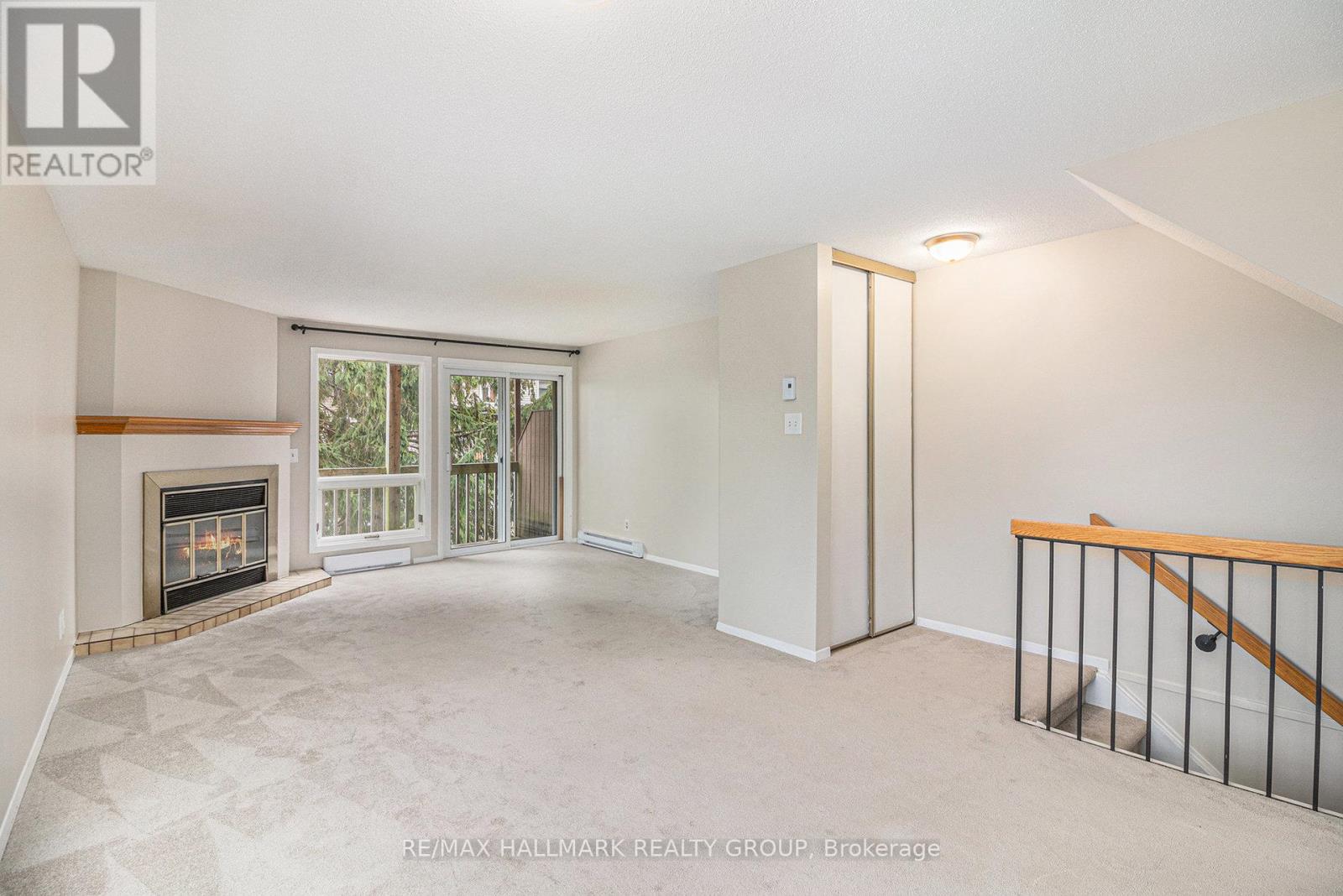 Well maintained, end-unit 2-bedroom, 2 bath upper terrace condo offering a bright interior in a peaceful, forest-backed setting of Convent Glen. The main level features an open-concept living/dining area with a cozy wood-burning fireplace and access to a private balcony with tranquil green-space views. A sun-filled eat-in kitchen and convenient powder room complete the main floor. Upstairs you'll find a sky light over the staircase & upper hallway, spacious primary bedroom with wall-to-wall closet space and its own private balcony, a bright second bedroom, full bathroom, and in-unit laundry/storage area. Newer carpets on the upper level, newer full sized washer/dryer and freshly painted throughout. Located steps from parks, playgrounds, transit, shops and the Ottawa River pathways, with easy access to Place d'Orléans, Petrie Island Beach and the LRT station. A perfect low-maintenance home in a highly desirable, nature-surrounded neighborhood. (id:37684)